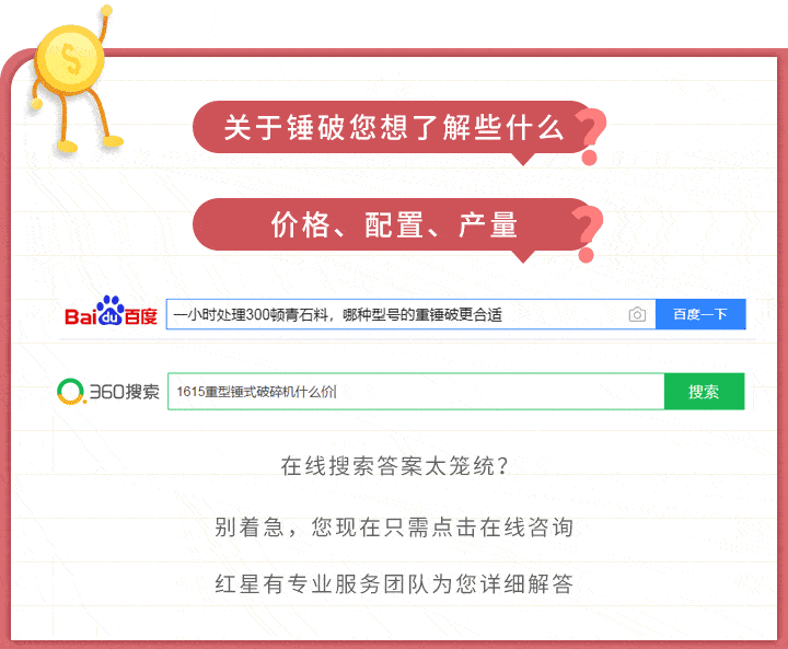 大家若是想具體了解1615重型錘式破碎機的價格,可選擇在線咨詢 的方式,我們的客服人員具備一定的專業(yè)設(shè)備知識,在為您進行準(zhǔn)確報價的同時,還可提供一些合適的方案或者建議供您參考。
